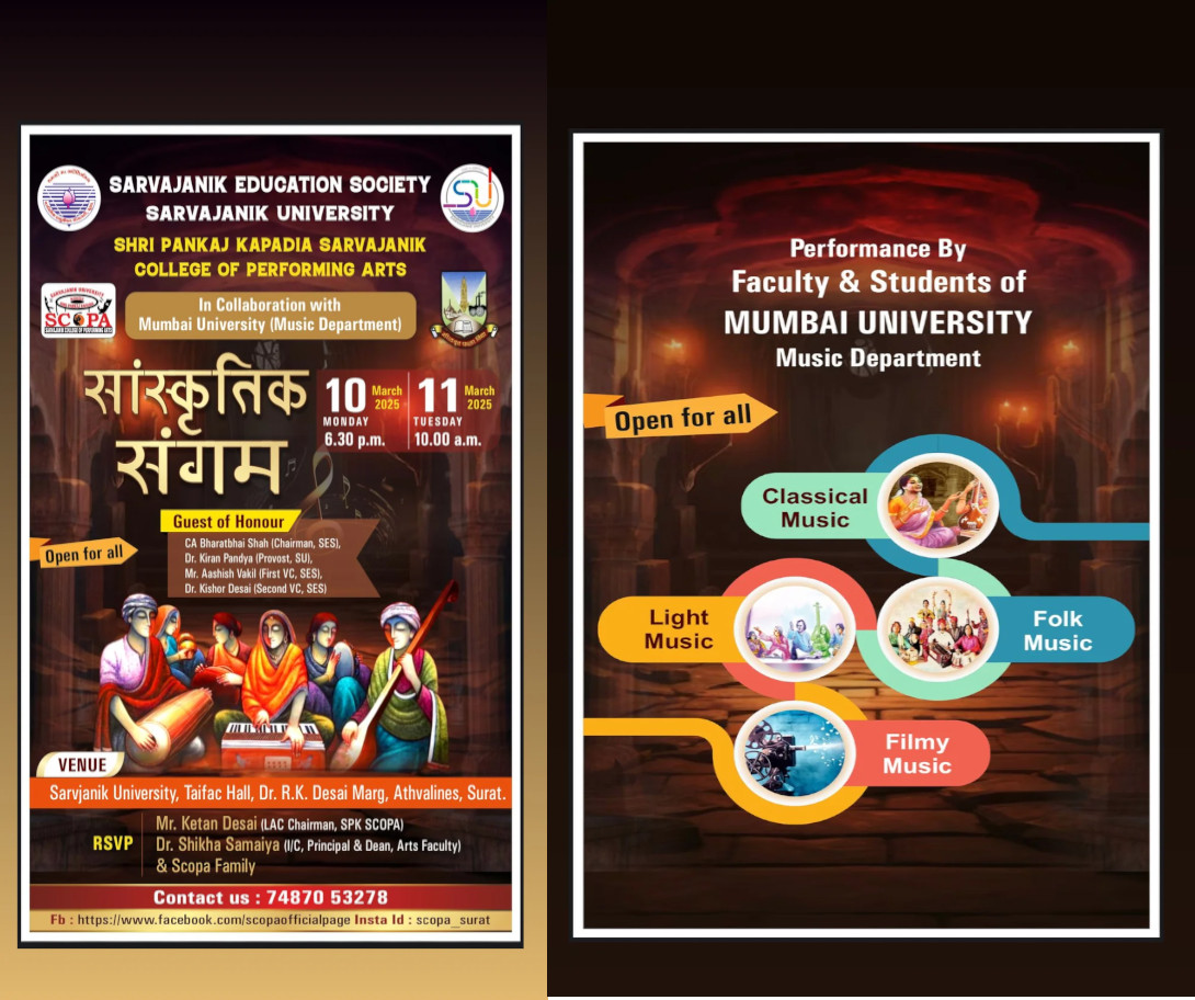 We are excited to invite you to a unique Cultural Exchange Program with *Mumbai University, Music department hosted by Shri Pankaj Kapadia Sarvajanik College of Performing Arts.*